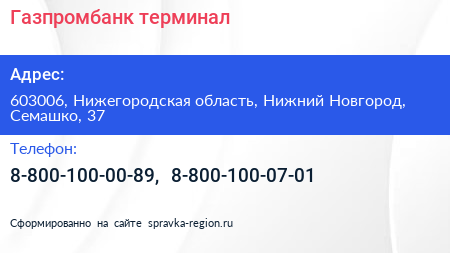 Газпромбанк, терминал по адресу 603006, Нижегородская область, Нижний Новгород, Семашко, 37 в дальнейшем Организация, размещена в следующих категориях: