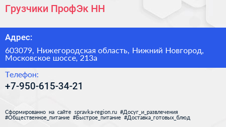Грузчики ПрофЭк НН по адресу 603079, Нижегородская область, Нижний Новгород, Московское шоссе, 213а в дальнейшем Организация, размещена в следующих категориях: