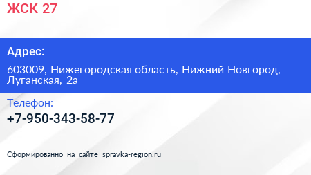 ЖСК-27 по адресу 603009, Нижегородская область, Нижний Новгород, Луганская, 2а в дальнейшем Организация, размещена в следующих категориях: