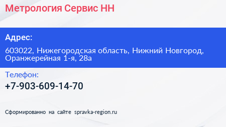 Метрология Сервис-НН по адресу 603022, Нижегородская область, Нижний Новгород, Оранжерейная 1-я, 28а в дальнейшем Организация, размещена в следующих категориях: