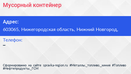 Мусорный контейнер по адресу 603065, Нижегородская область, Нижний Новгород, в дальнейшем Организация, размещена в следующих категориях: