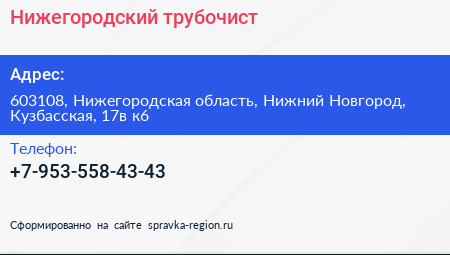 Нижегородский трубочист по адресу 603108, Нижегородская область, Нижний Новгород, Кузбасская, 17в к6 в дальнейшем Организация, размещена в следующих категориях: