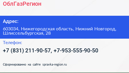 ОблГазРегион по адресу 603034, Нижегородская область, Нижний Новгород, Шлиссельбургская, 28 в дальнейшем Организация, размещена в следующих категориях: