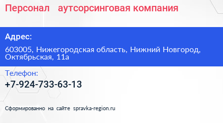 Персонал +, аутсорсинговая компания по адресу 603005, Нижегородская область, Нижний Новгород, Октябрьская, 11а в дальнейшем Организация, размещена в следующих категориях: