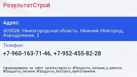 РезультатСтрой по адресу 603028, Нижегородская область, Нижний Новгород, Аэродромная, 1 в дальнейшем Организация, размещена в следующих категориях: