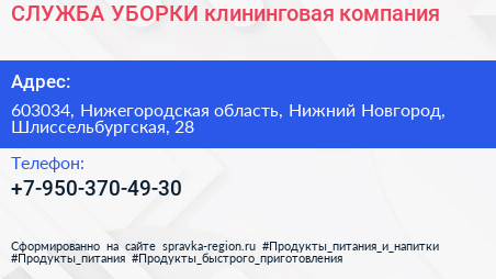 СЛУЖБА УБОРКИ, клининговая компания по адресу 603034, Нижегородская область, Нижний Новгород, Шлиссельбургская, 28 в дальнейшем Организация, размещена в следующих категориях: