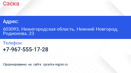 Сэска по адресу 603093, Нижегородская область, Нижний Новгород, Родионова, 23 в дальнейшем Организация, размещена в следующих категориях: