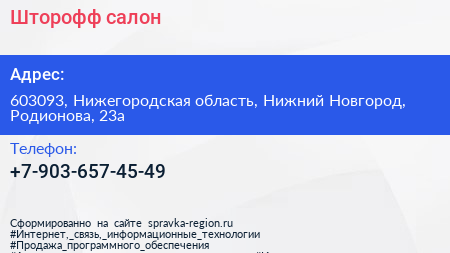 Шторофф, салон по адресу 603093, Нижегородская область, Нижний Новгород, Родионова, 23а в дальнейшем Организация, размещена в следующих категориях: