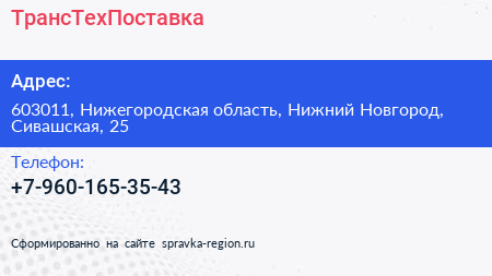 ТрансТехПоставка по адресу 603011, Нижегородская область, Нижний Новгород, Сивашская, 25 в дальнейшем Организация, размещена в следующих категориях: