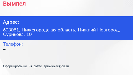Вымпел по адресу 603081, Нижегородская область, Нижний Новгород, Сурикова, 10 в дальнейшем Организация, размещена в следующих категориях: