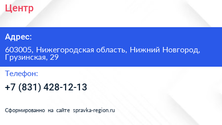 Центр по адресу 603005, Нижегородская область, Нижний Новгород, Грузинская, 29 в дальнейшем Организация, размещена в следующих категориях: