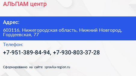 АЛЬПАМ, центр по адресу 603116, Нижегородская область, Нижний Новгород, Гордеевская, 77 в дальнейшем Организация, размещена в следующих категориях:
