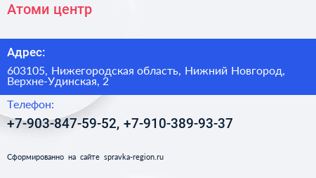 Атоми, центр по адресу 603105, Нижегородская область, Нижний Новгород, Верхне-Удинская, 2 в дальнейшем Организация, размещена в следующих категориях: