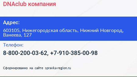 DNAclub, компания по адресу 603105, Нижегородская область, Нижний Новгород, Ванеева, 127 в дальнейшем Организация, размещена в следующих категориях: