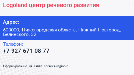 Logoland, центр речевого развития по адресу 603000, Нижегородская область, Нижний Новгород, Белинского, 32 в дальнейшем Организация, размещена в следующих категориях: