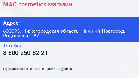 MAC cosmetics, магазин по адресу 603093, Нижегородская область, Нижний Новгород, Родионова, 187 в дальнейшем Организация, размещена в следующих категориях: