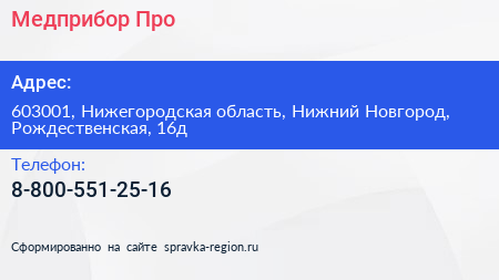 Медприбор Про по адресу 603001, Нижегородская область, Нижний Новгород, Рождественская, 16д в дальнейшем Организация, размещена в следующих категориях: