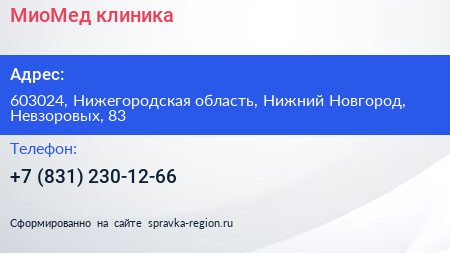 МиоМед, клиника по адресу 603024, Нижегородская область, Нижний Новгород, Невзоровых, 83 в дальнейшем Организация, размещена в следующих категориях: