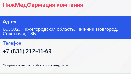 НижМедФармация, компания по адресу 603002, Нижегородская область, Нижний Новгород, Советская, 18Б в дальнейшем Организация, размещена в следующих категориях: