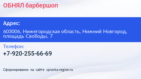 ОБНЯЛ, барбершоп по адресу 603006, Нижегородская область, Нижний Новгород, площадь Свободы, 7 в дальнейшем Организация, размещена в следующих категориях: