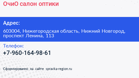 ОчиО, салон оптики по адресу 603004, Нижегородская область, Нижний Новгород, проспект Ленина, 113 в дальнейшем Организация, размещена в следующих категориях: