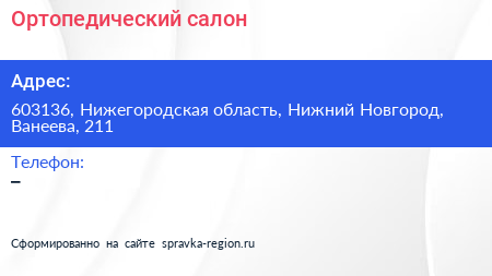 Ортопедический салон по адресу 603136, Нижегородская область, Нижний Новгород, Ванеева, 211 в дальнейшем Организация, размещена в следующих категориях: