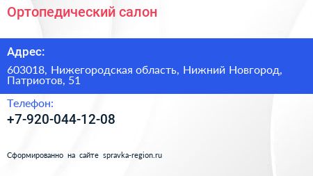Ортопедический салон по адресу 603018, Нижегородская область, Нижний Новгород, Патриотов, 51 в дальнейшем Организация, размещена в следующих категориях: