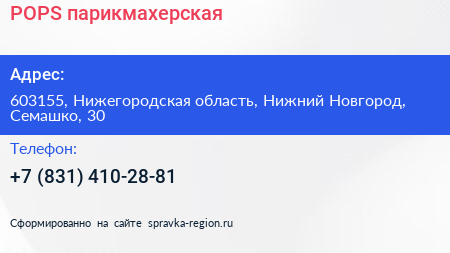 POPS, парикмахерская по адресу 603155, Нижегородская область, Нижний Новгород, Семашко, 30 в дальнейшем Организация, размещена в следующих категориях: