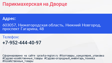 Парикмахерская на Дворце по адресу 603057, Нижегородская область, Нижний Новгород, проспект Гагарина, 48 в дальнейшем Организация, размещена в следующих категориях: