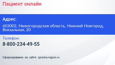 Пациент.онлайн по адресу 603002, Нижегородская область, Нижний Новгород, Вокзальная, 20 в дальнейшем Организация, размещена в следующих категориях: