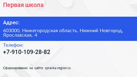 Первая школа по адресу 603000, Нижегородская область, Нижний Новгород, Ярославская, 4 в дальнейшем Организация, размещена в следующих категориях: