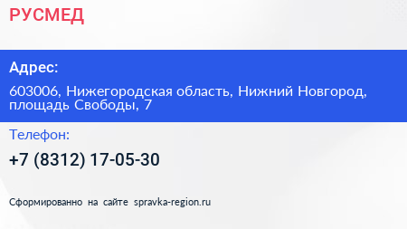 РУСМЕД по адресу 603006, Нижегородская область, Нижний Новгород, площадь Свободы, 7 в дальнейшем Организация, размещена в следующих категориях: