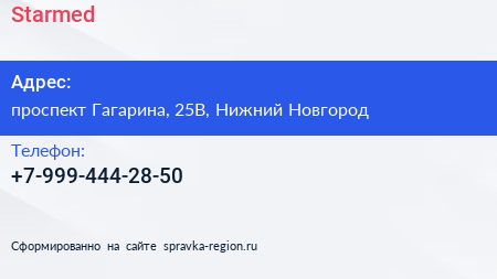 Starmed по адресу проспект Гагарина, 25В, Нижний Новгород в дальнейшем Организация, размещена в следующих категориях: