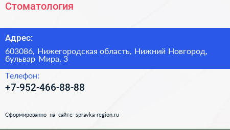 Стоматология по адресу 603086, Нижегородская область, Нижний Новгород, бульвар Мира, 3 в дальнейшем Организация, размещена в следующих категориях: