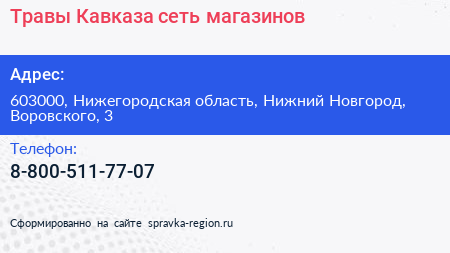Травы Кавказа, сеть магазинов по адресу 603000, Нижегородская область, Нижний Новгород, Воровского, 3 в дальнейшем Организация, размещена в следующих категориях: