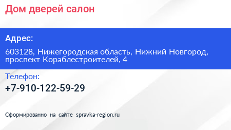 Дом дверей, салон по адресу 603128, Нижегородская область, Нижний Новгород, проспект Кораблестроителей, 4 в дальнейшем Организация, размещена в следующих категориях:
