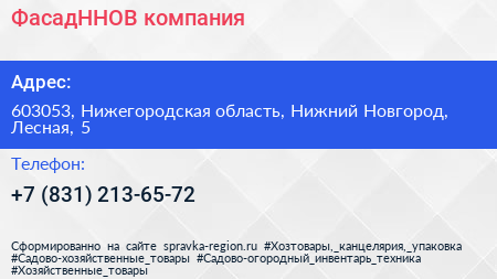 ФасадННОВ, компания по адресу 603053, Нижегородская область, Нижний Новгород, Лесная, 5 в дальнейшем Организация, размещена в следующих категориях: