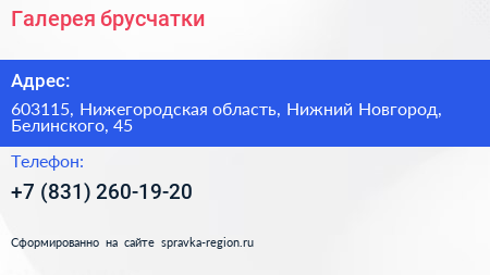 Галерея брусчатки по адресу 603115, Нижегородская область, Нижний Новгород, Белинского, 45 в дальнейшем Организация, размещена в следующих категориях: