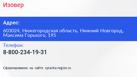 Изовер по адресу 603024, Нижегородская область, Нижний Новгород, Максима Горького, 195 в дальнейшем Организация, размещена в следующих категориях: