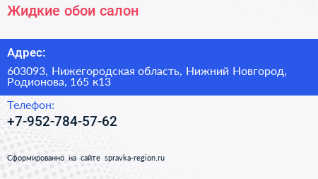 Жидкие обои, салон по адресу 603093, Нижегородская область, Нижний Новгород, Родионова, 165 к13 в дальнейшем Организация, размещена в следующих категориях: