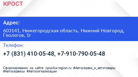 КРОСТ по адресу 603141, Нижегородская область, Нижний Новгород, Геологов, 1г в дальнейшем Организация, размещена в следующих категориях: