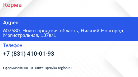 Керма по адресу 607680, Нижегородская область, Нижний Новгород, Магистральная, 137в/1 в дальнейшем Организация, размещена в следующих категориях: