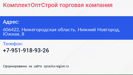 КомплектОптСтрой, торговая компания по адресу 606422, Нижегородская область, Нижний Новгород, Южная, 8 в дальнейшем Организация, размещена в следующих категориях: