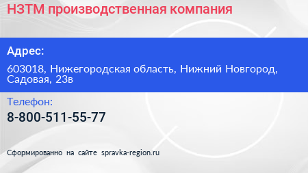 НЗТМ, производственная компания по адресу 603018, Нижегородская область, Нижний Новгород, Садовая, 23в в дальнейшем Организация, размещена в следующих категориях: