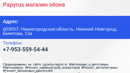 Papyrus, магазин обоев по адресу 603057, Нижегородская область, Нижний Новгород, Бекетова, 13а в дальнейшем Организация, размещена в следующих категориях:
