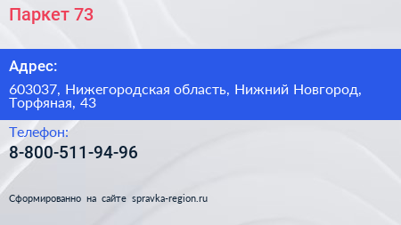 Паркет 73 по адресу 603037, Нижегородская область, Нижний Новгород, Торфяная, 43 в дальнейшем Организация, размещена в следующих категориях: