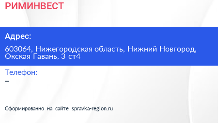 РИМИНВЕСТ по адресу 603064, Нижегородская область, Нижний Новгород, Окская Гавань, 3 ст4 в дальнейшем Организация, размещена в следующих категориях: