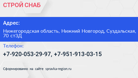СТРОЙ-СНАБ по адресу Нижегородская область, Нижний Новгород, Суздальская, 70 ст3Д в дальнейшем Организация, размещена в следующих категориях: