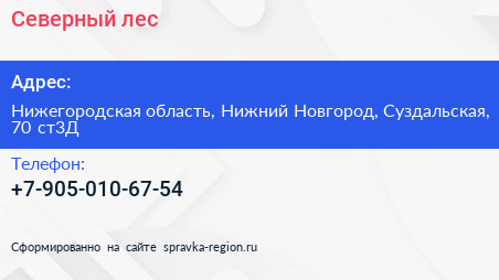 Северный лес по адресу Нижегородская область, Нижний Новгород, Суздальская, 70 ст3Д в дальнейшем Организация, размещена в следующих категориях: