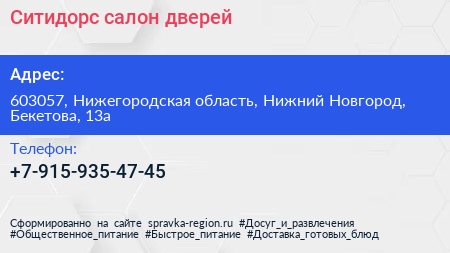 Ситидорс, салон дверей по адресу 603057, Нижегородская область, Нижний Новгород, Бекетова, 13а в дальнейшем Организация, размещена в следующих категориях: